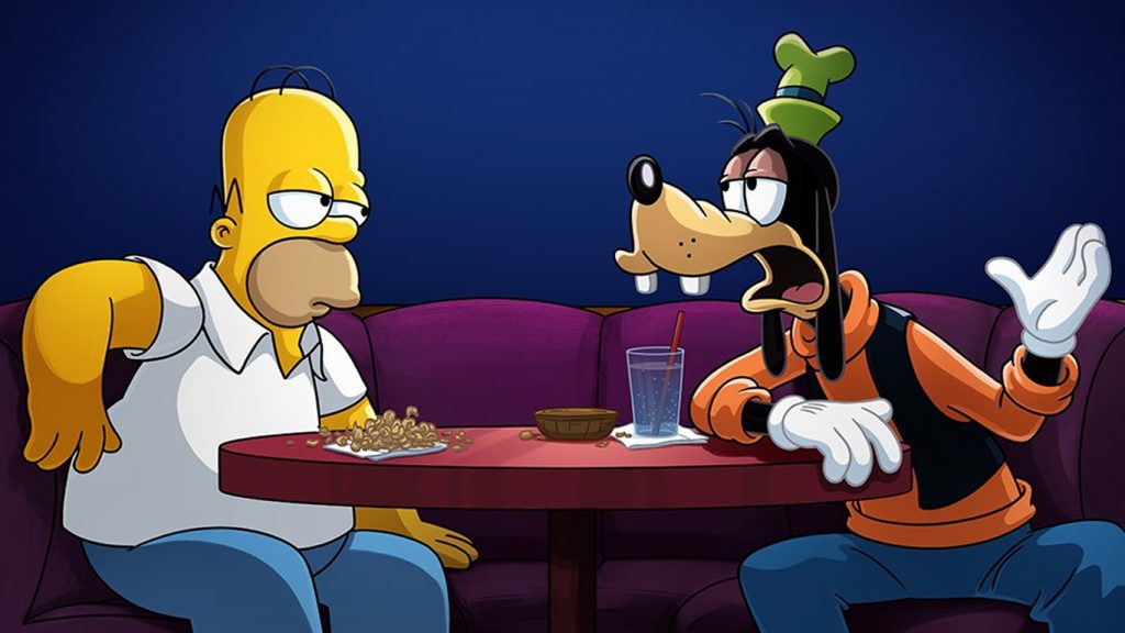Não tem nada a ver com os Simpsons... o Pateta foi criado com inspiração em um palhaço de circo. Suas características também são baseadas em um cão da raça bloodhound. Curioso, né? Parece que Walt Disney gostava muito dessa raça.